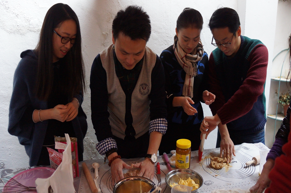 活动中,所有参与嘉宾分成了若干个圣诞小分队,在主持人的引导下进行了饶有趣味的热身小游戏。之后,大家进入了神秘的圣诞寻宝环节,两人一组分头在屋子里寻找制作圣诞姜饼所需的各种原材料,只有集齐了全部材料,才能进入下一步的制作环节。在大家的共同努力下,“藏身”于隐蔽角落的原材料一件件都被“逮”了出来。接着,大家便开动双手,互相协作,经过化油、加粉、揉面、擀薄、压模、烘烤等多道工序,伴随着屋子里飘出的阵阵醇香,一块块形态各异、色香味俱全的圣诞姜饼终于新鲜出炉。咬上一口,脆在舌尖、甜在心里,为这个冬日的午后增添了几分爱的暖意。