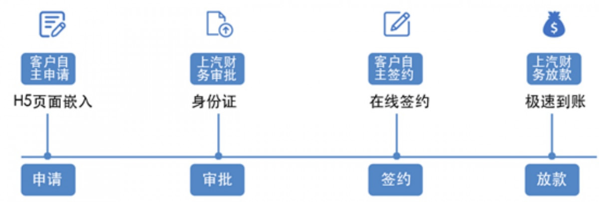 客户从厂家的线上购车页面进入,自主选择贷款方案,并在线提交贷款申请;